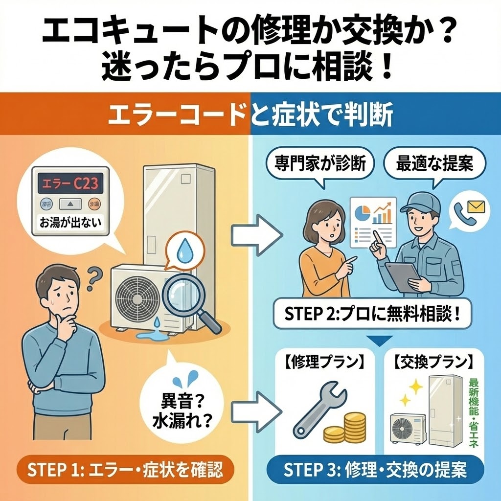 1-2. エコキュートの修理か交換か?迷ったらプロに相談!エラーコードと症状で判断