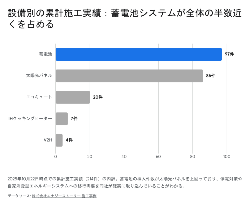 株式会社エナジーストーリーは、東京都八王子市八日町に本社を置き、主に住宅用の太陽光発電システム、家庭用蓄電池、およびオール電化システム(エコキュートやIHクッキングヒーターなど)の販売・施工をワンストップで手掛けている企業です。