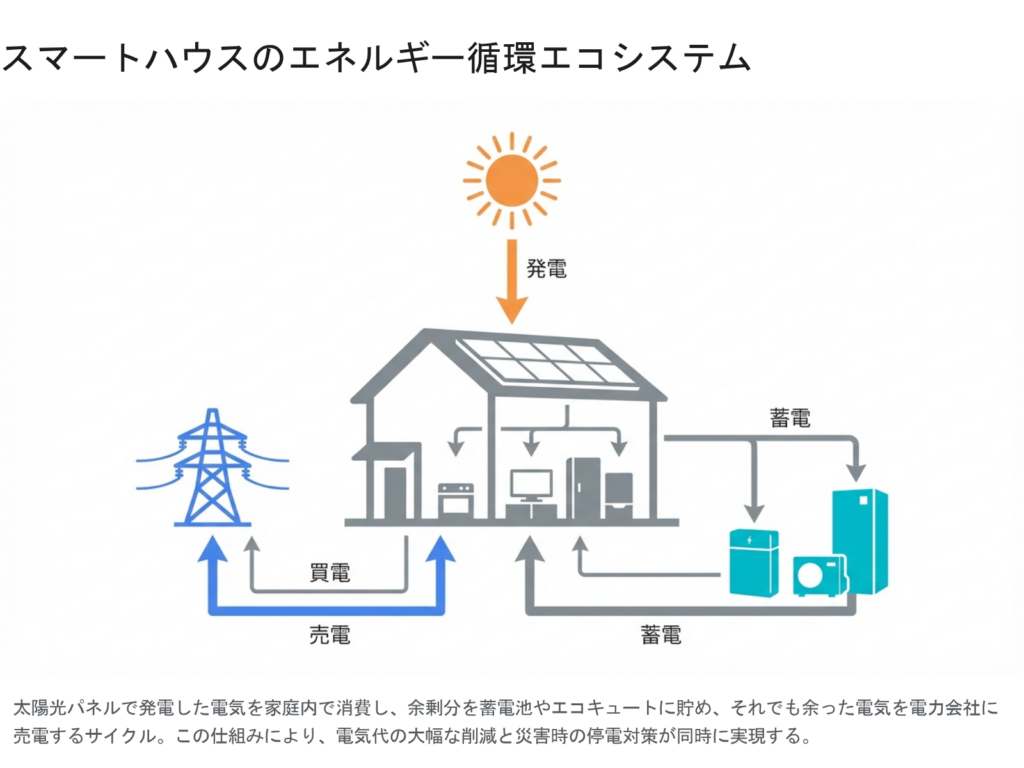 太陽光で電気を「作り」、蓄電池やエコキュートで「貯め」、余った電気を「売る」というサイクルを構築することで、家計への負担を劇的に減らすことができるのです。さらに、昨今の「卒FIT(固定価格買取制度の終了)」を見据え、売電よりも自家消費を優先する賢いライフスタイルを提案しています。