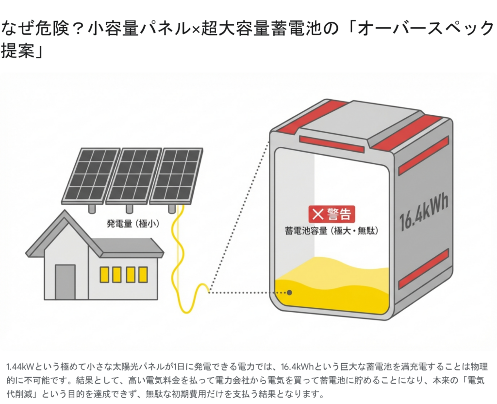 今日、専門家のお二人からお話を聞けて本当に良かったです!もしあのまま「補助金でお得になりますよ」という言葉だけを信じてハンコを押していたらと思うと、ゾッとします。1.44kWのパネルに16.4kWhの蓄電池の組み合わせがどれだけ異常か、素人には絶対に気づけませんでした。