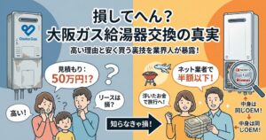 「給湯器が急に壊れてお湯が出ない!」 焦って地元のガス会社やホームセンターで見積もりを取ったら、「交換費用は30万円です」と言われて絶望していませんか?突然の出費に30万円は痛すぎますよね。
